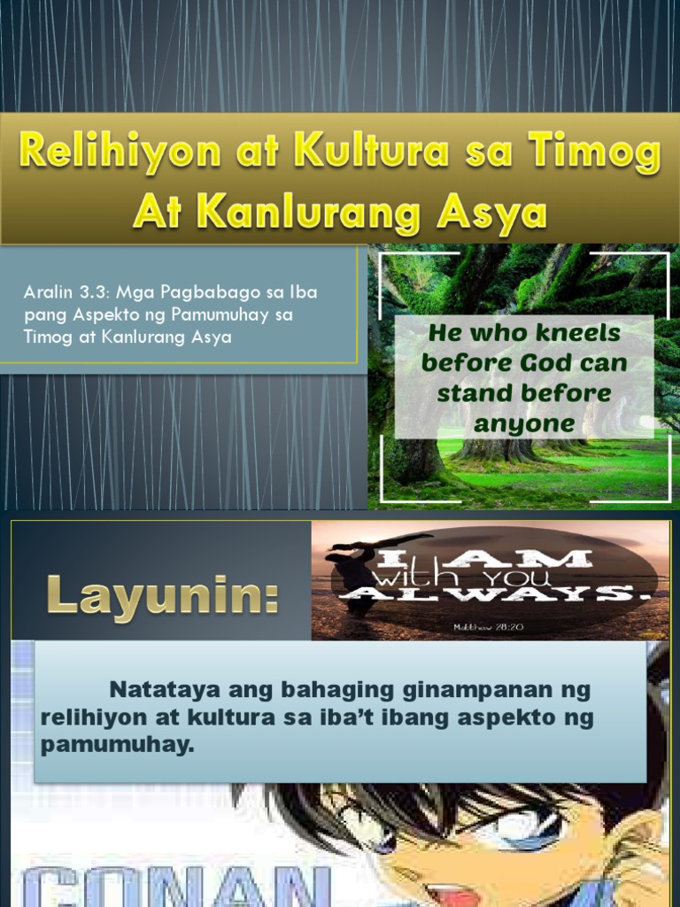 000 intro 044 mga salik na araling panlipunan 7 araling asyano ikatlong markahan 3rd quarter learners. Ilan dito ay ang mga tanong kung paano at saan nagmula ang mga kontribusyon ng mga Asyano partikular sa tatlong mahahalagang aspeto-humanidades panitikan at palakasan. Ang lahat ng ito ay bibigyang linaw sa modyul na ito upang tulungan kang maunawaan ang kontribusyon ng Timog at Kanlurang Asya at ang Pagkakakilanlan ng Kulturang Asyano sa.