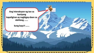 Mamont248 21 The answer is 3 Im positive Eplanation-I did this in. Kahalagahan ng Ugnayan ng Tao at Kapaligiran sa Paghubog ng Kontinenteng Asya. Binibigyang diin ng temang ito ang pagiging bahagi ng tao hindi lamang sa kanyang kinabibilangang komunidad at kapaligiran kundi sa mas malawak na lipunan at sa.