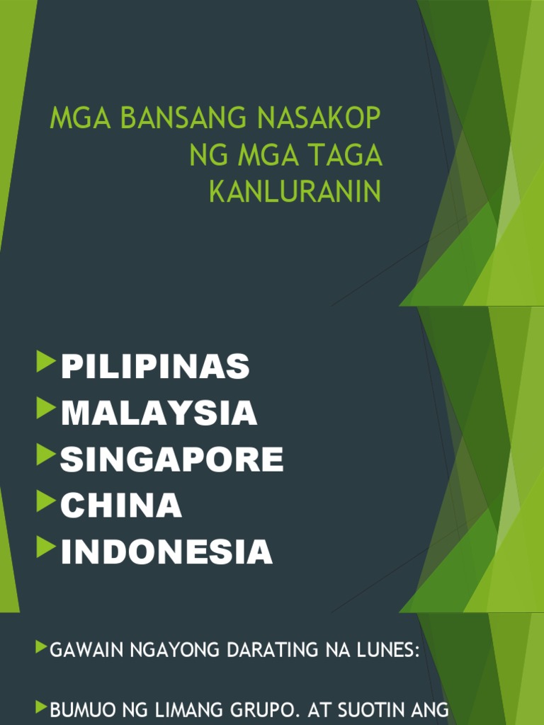 Ng mga taga kanluranin pilipinas malaysia singapore china indonesia gawain ngayong darating na lunes. MATALINONG HARI Mongkut o RAMA IV - Chulalungkorn o RAMA V - 2. Ano ang mga bansang nasakop ng mga kanluranin.